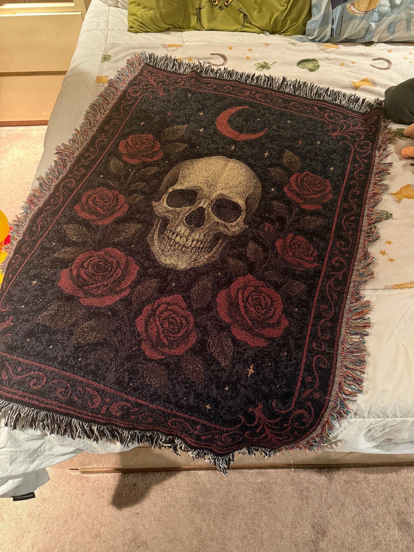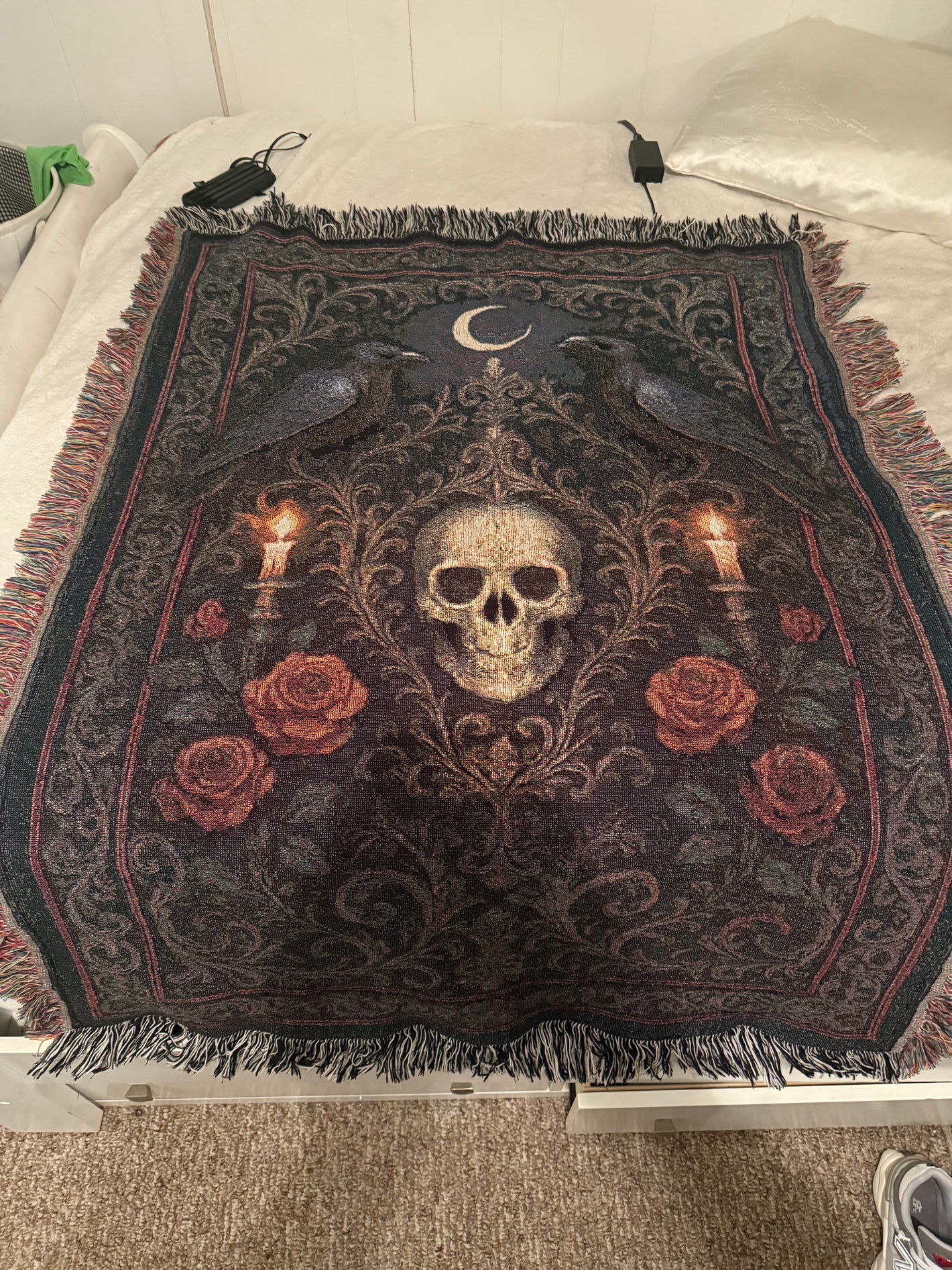 Otul się elegancją mroku dzięki kocom utkanym z motywów czaszek, róż i blasku księżyca. Każdy egzemplarz został stworzony, by wnieść do Twojej przestrzeni nutę tajemniczości, komfortu i ponadczasowego gotyckiego piękna🌙